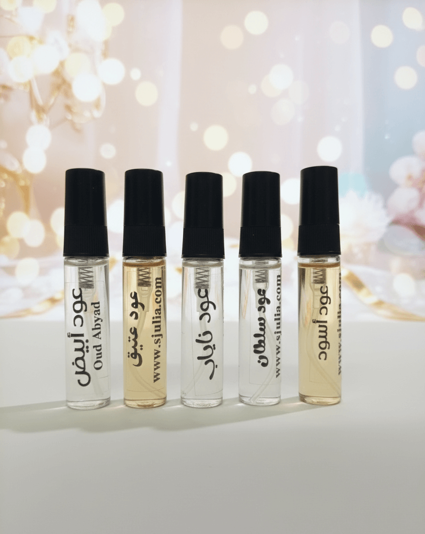 Explore your signature oud with SJULIA’s Oud Testers Set—a premium collection of 5 pocket-size 6ml spray perfumes. Try rich, bold, elegant, and luxurious oud notes before choosing your perfect full-size fragrance.