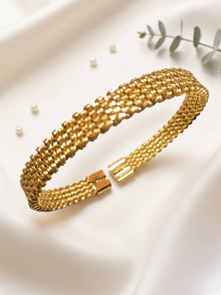 Enhance your everyday look with the Stainless Steel Hand Cuff, designed to bring effortless elegance and lasting shine to your style. Crafted with premium quality stainless steel, these bangles offer a refined finish that complements both traditional and modern outfits.